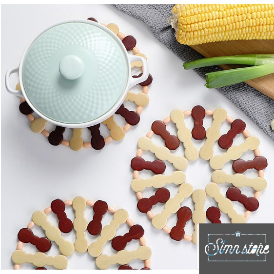 Giới thiệu sản phẩm :Miếng lót nồi trúc kết xinh xắn góp phần làm đẹp không gian bếp, bàn ăn. Được gia công hoàn toàn bằng chất liệu gỗ tre, gọn nhẹ, nhưng cứng cáp tuyệt đối.