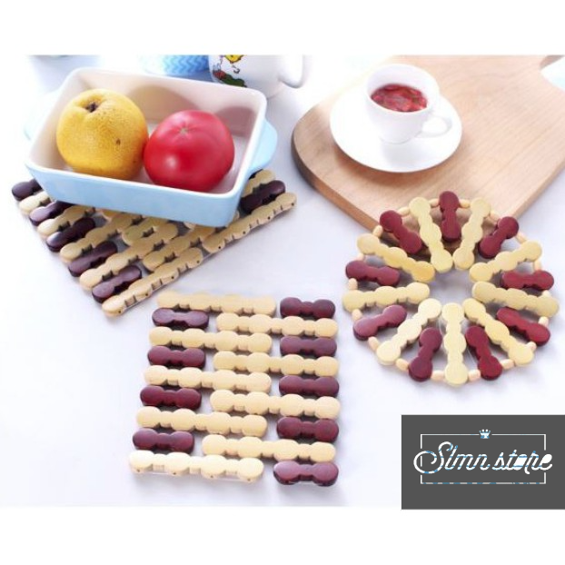 Nhà cửa & Đời sống > Bộ đồ bàn ăn > Khay, tấm lót bàn ăn || Combo 5 Tấm lót nồi cách nhiệt chất liệu tre - tấm lót nồi cách nhiệt cao cấp - tấm lót nồi tre. Slmn_LNTreNau-5Còn hàng