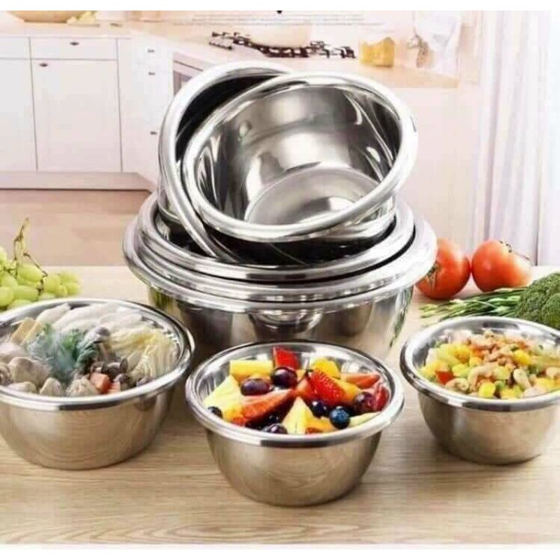❤BỘ 5 THAU INOX 304 các cỡ từ to đến nhỏ!Hàng dầy dặn 2 lớp inox sáng bóng.❤️ Set 5 thau inox 304 size to