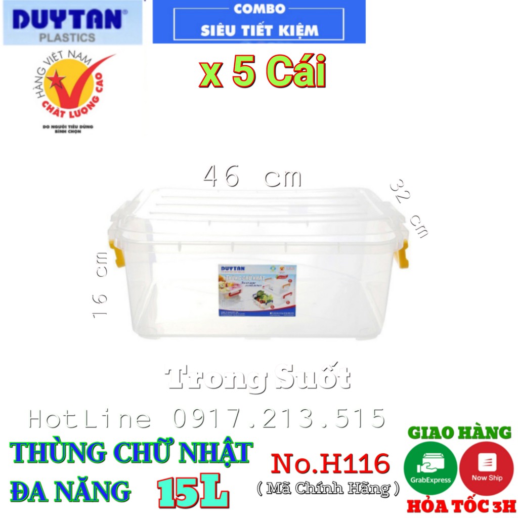 COMBO 5 Thùng nhựa duy tân 15L Trong suốt