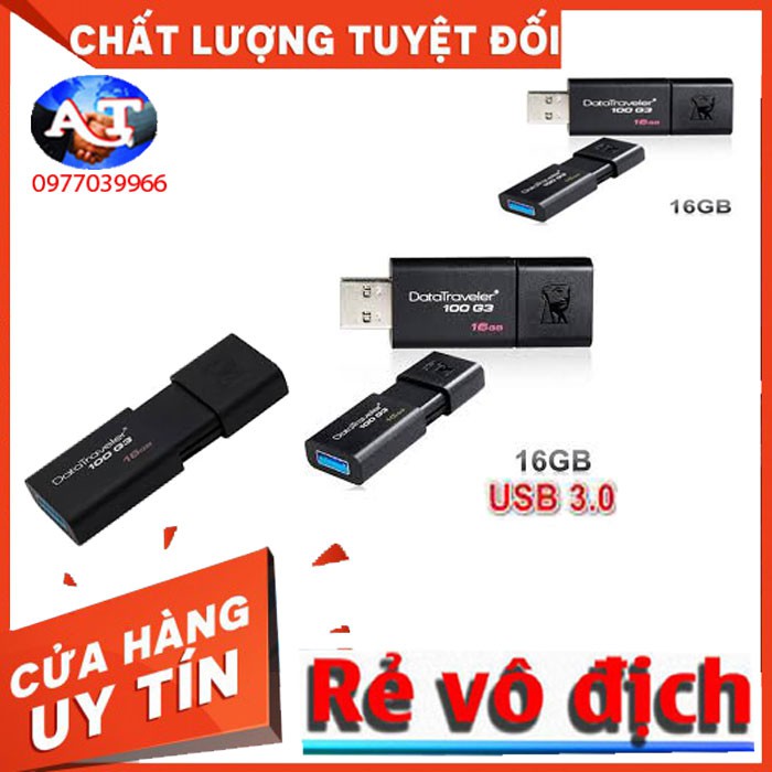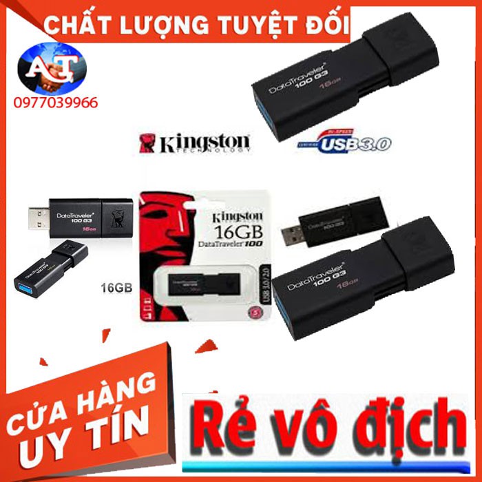 USB 3.0 Kingston Data Traveler DT100G3 100MB/s 16GB (Đen) - Hãng Phân Phối Chính Thứcvới công nghệ 3.0 cho phép trao đổi dữ liệu giữa máy tính và thiết bị một cách nhanh chóng.Công nghệUSB 3.0với tốc độ truyền tải dữ liệu nhanh, đồng thời có thể tương thích ngược với cổng USB 2.0 thông thường.