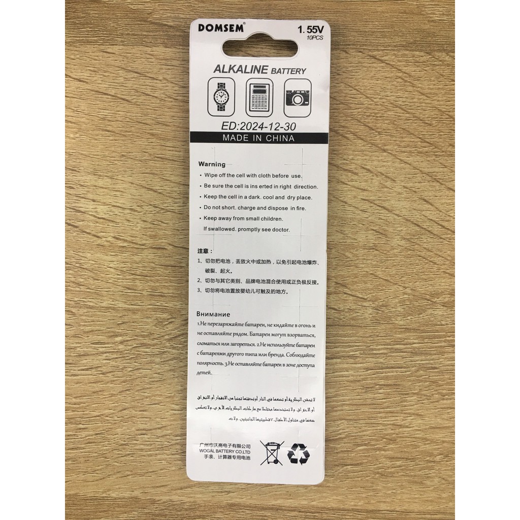 - Tên sản phẩm : Combo 5 vỉ pin Domsem LR44 44 AG13 G13 Alkaline 1.55V- Loại pin : Pin Alkaline