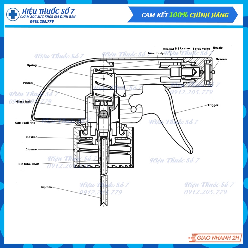 Vòi xịt kính cổ 28mmĐầu vòi xịt thay thế bình xịt tưới cây