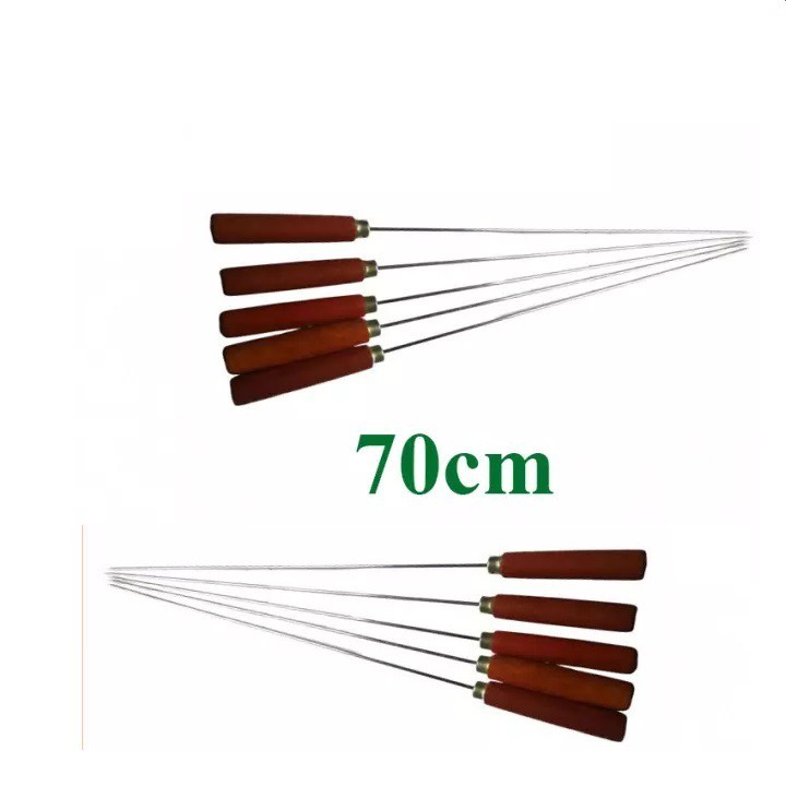 Nhà cửa & Đời sống > Dụng cụ nhà bếp > Lò nướng & phụ kiện || COMBO 5 xiên nướng thịt chuôi gỗ dài 70 cm dày 6 mm cao cấpCòn hàng