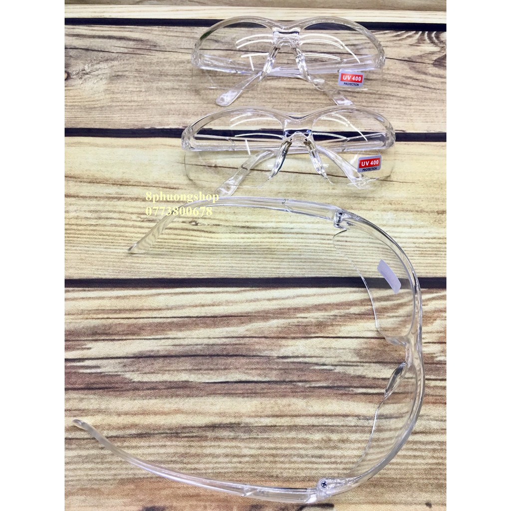 Combo 50 cây Kính bảo hộ lao động, kính đi đường chống bụi Trắng Trong ( UV Cong )