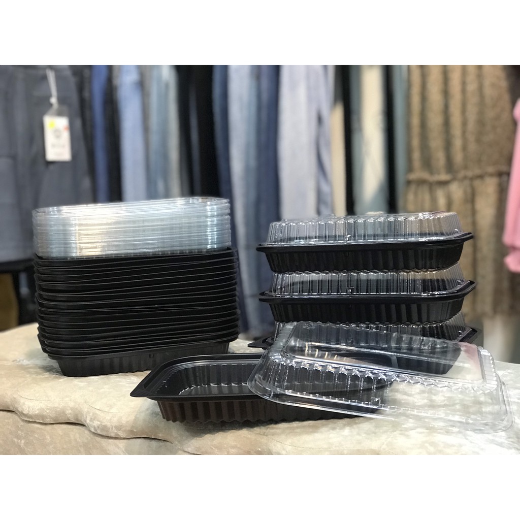 Combo 50 hộp chữ nhật đựng đồ ăn dùng 1 lần nhựa đen HT203 kèm nắp đậy
