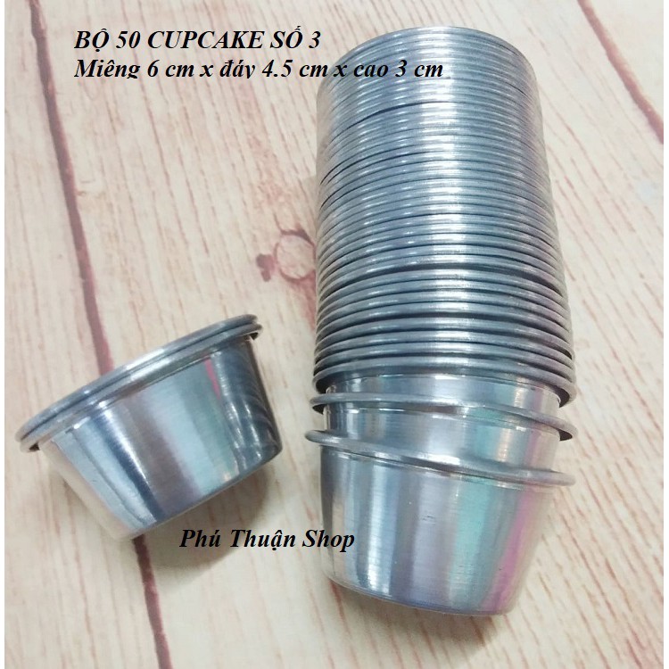 COMBO 50 KHUÔN CUPCAKE NHÔM SỐ 3 KÍCH THƯỚC MIỆNG 6CM X ĐÁY 4.5CM X CAO 3CM