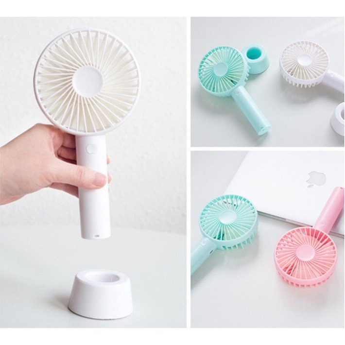- Quạt Mini cầm tay sạc điện được thiết kế thông minh với 1 chân đế tiện dụng, có thể sử dụng ở bất cứ nơi đâu, giúp bạn xua tan nắng nóng mùa hè. - Quạt chạy êm với lượng gió vừa phải, thích hợp sử dụng để bàn cho dân văn phòng, sinh viên.