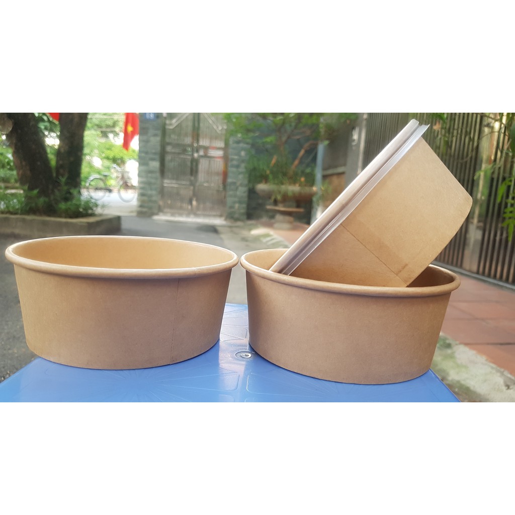 Combo 50 Tô/ Bát Giấy Kraft Kèm Nắp Nhựa 750ml , 1000ml - Đựng Mỳ Cay, Miến Trộn, Tokbokki - Loại Dày