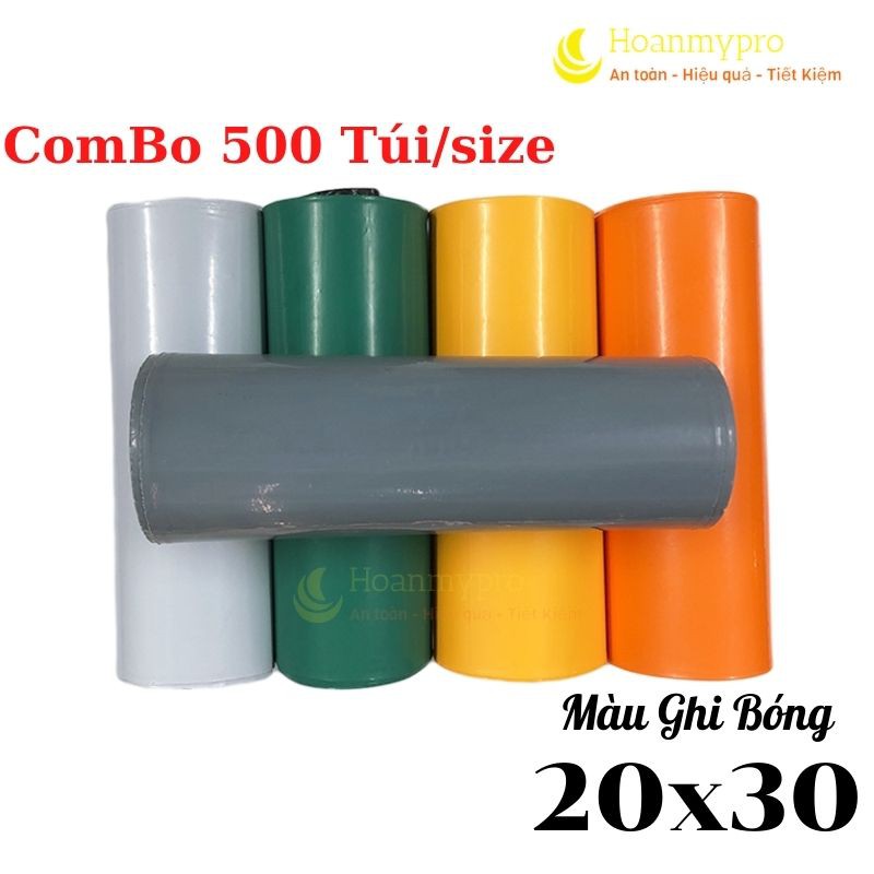 COMBO 500 Túi Gói Hàng Niêm Phong Tự Dính Màu Ghi Bóng Size 20x30