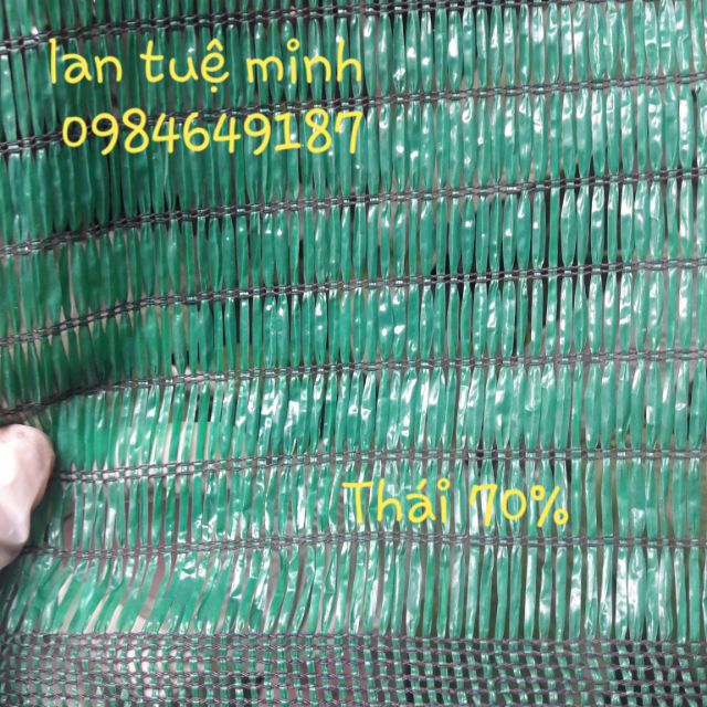 Lưới che nắng 70% Thái Lan (khổ 3m) màu xanh dài 1m dùng để che nắng cho phong lan, vườn ươm cây, cây trồng, vườn rau quả được nhập khẩu từ Thái Lan với độ bền lên tới 7 năm.Giá bán: 18k/1 m dài (khổ 2m)