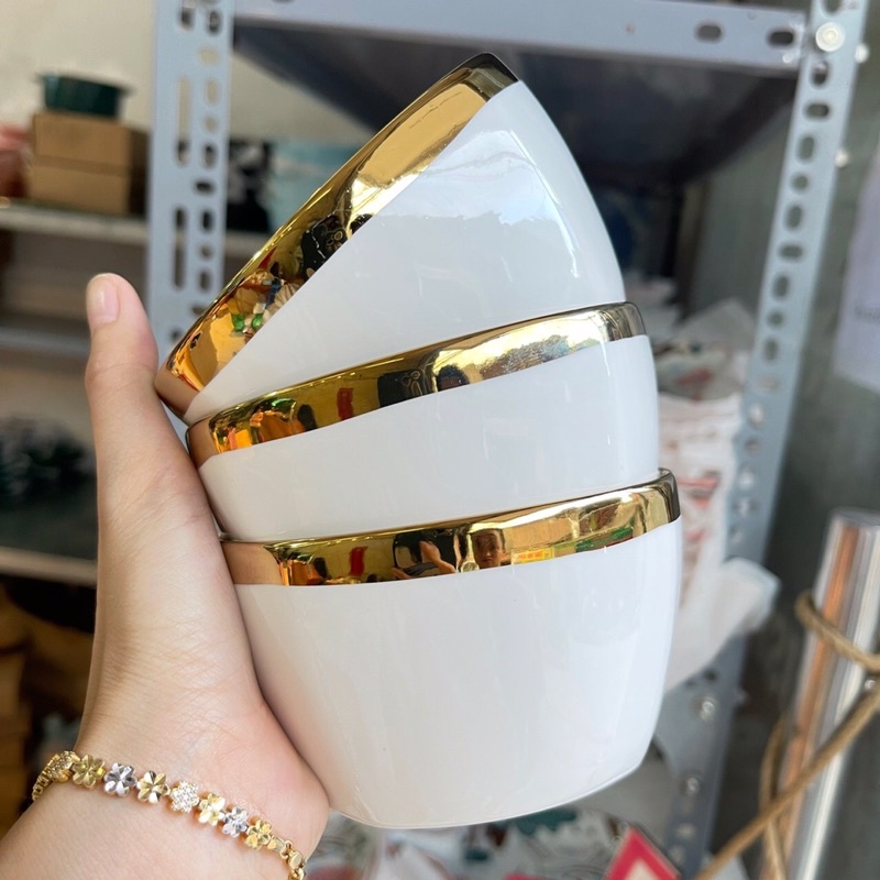 Nhà cửa & Đời sống > Bộ đồ bàn ăn > Dĩa || Combo 6 bát viền vàng tặng kèm đũa và hộp đựngCòn hàng