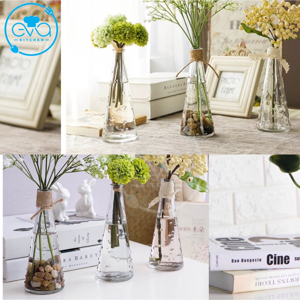 Combo 6 Bình Bông Lọ Hoa Thủy Tinh Tam Giác Chấm Bi Nổi 1 Cành Tặng Kèm Dây Bố Trang Trí
