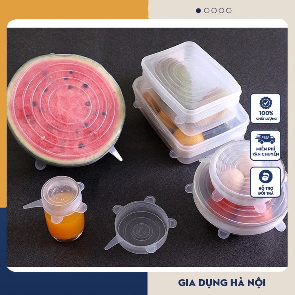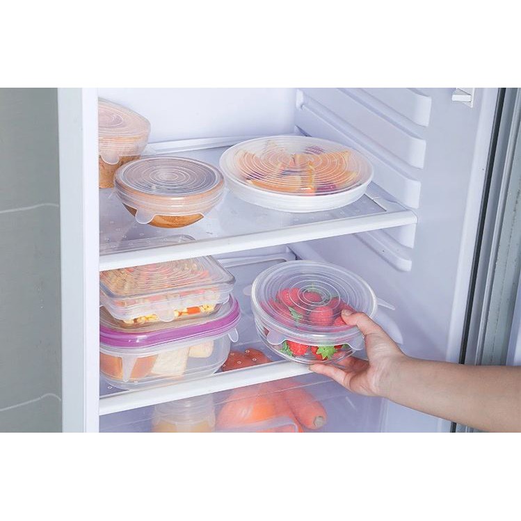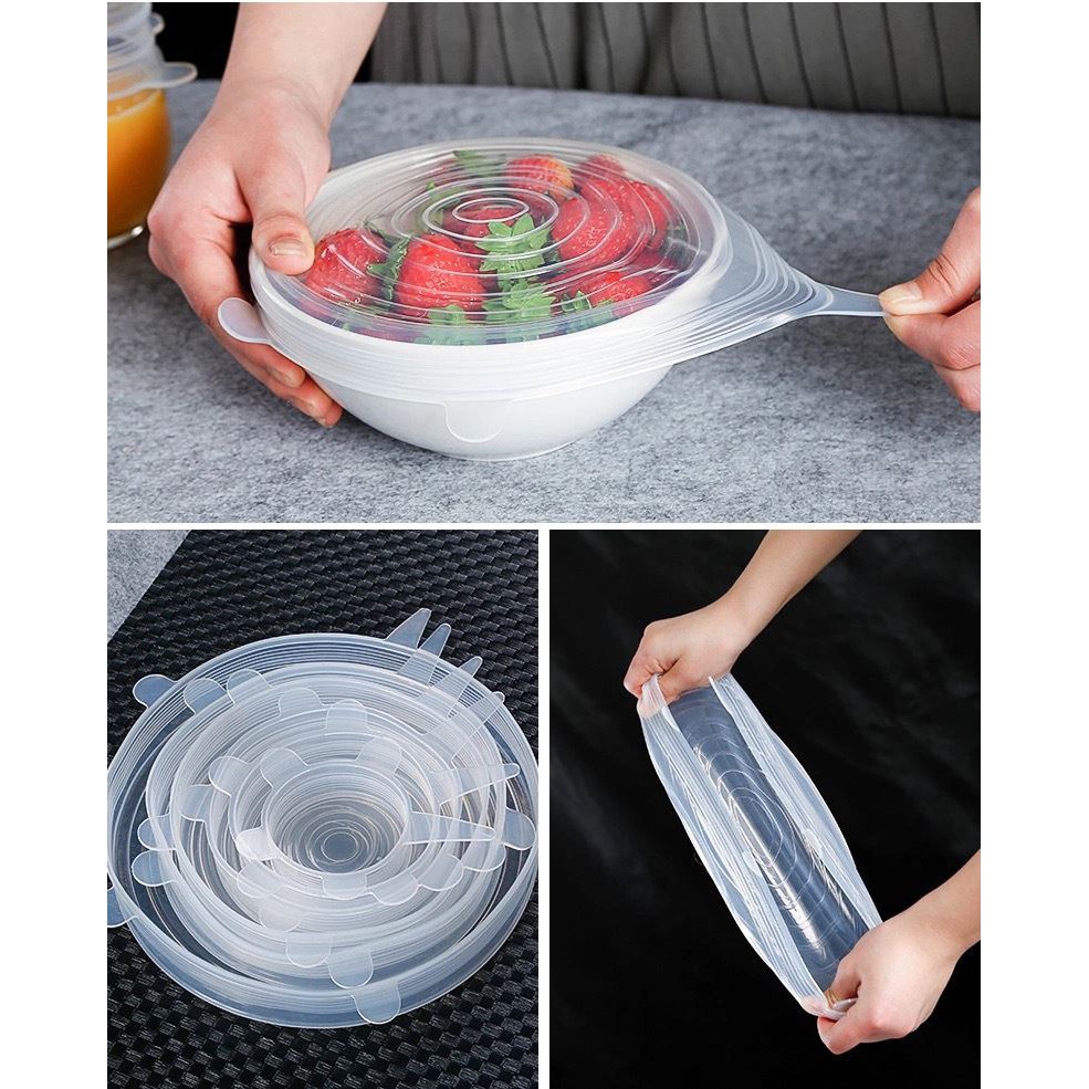 1 set gồm 6 nắp kích thước từ bé đến lớn, đảm đảo có thể đậy được từ bát nhỏ đến bát lớn, cực kín, cực khít.
