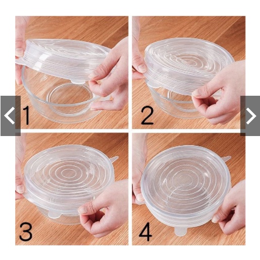 1 set gồm 6 nắp kích thước từ bé đến lớn, đảm đảo có thể đậy được từ bát nhỏ đến bát lớn, cực kín, cực khít.
