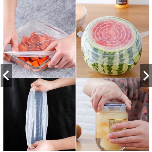 Nắp dậy Silicon có kích cỡ khác nhau, co giãn để vừa với mọi loại chén dĩa, xoong nồi... Ko cần màng bọc thực phẩm, ko cần túi zip nữa. Chỉ 6 chiếc nắp này là đủ. Rất tiện lơi hộp tròn hộp vuông đều có thể bọc vừa hết. Kín tuyệt đối. Có thể dốc ngược mà ko lo bị trào nước. Đảm bảo đồ dùng bên trong được bảo quản một cách hoàn hảo