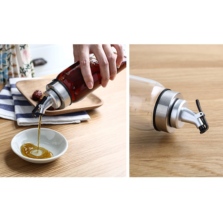 COMBO 6 CHAI THỦY TINH ĐỰNG DẦU, GIẤM, GIA VỊ, NƯỚC MẮM, NƯỚC TƯƠNG CÓ VÒI RÓT VẠCH CHIA 450ML (ĐỰNG TỐI ĐA 500ML)