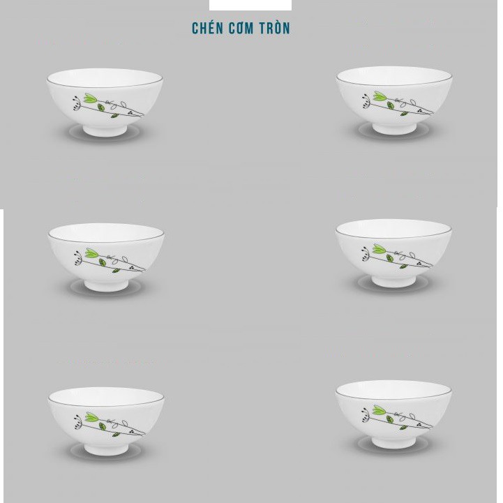 6 chén cơm với họa tiết mềm mại, kiểu dáng tròn gọn, vừa vặn với tay người dùng, dễ cầm và bưng bê.