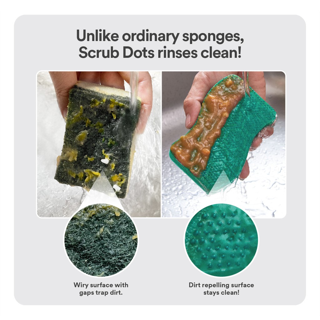 - Chà mạnh mẽ - lớp phủ hạt nổi trên bề mặt miếng rửa chén gúp làm sạch các vết bẩn cứng đầu.
