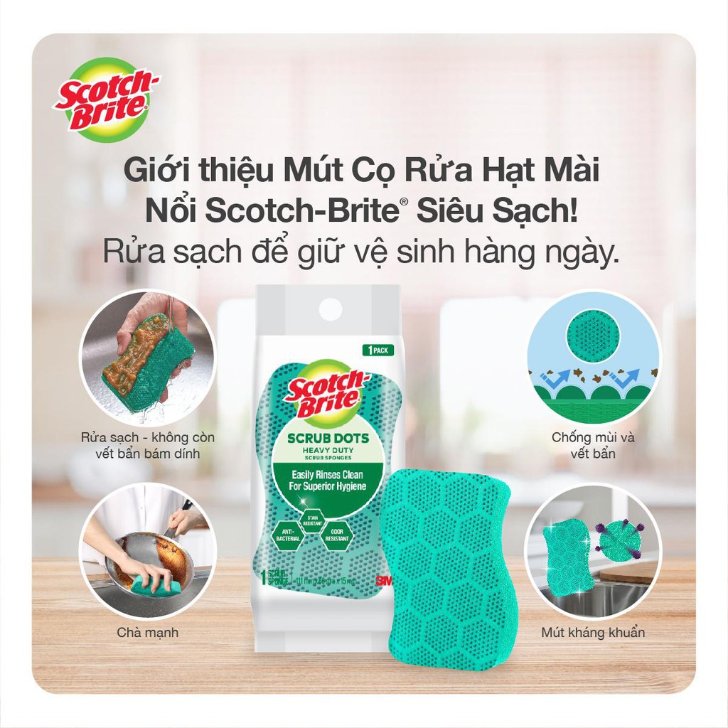 Combo 6 Gói 2 Miếng Cọ Rửa Hạt Nổi Siêu Sạch Scotch-Brite 3M (11.4 x 6.9 x 2.6cm) – Hàng Chính Hãng – HIBUCENTERĐánh bay các vết bẩn cứng đầu với Miếng Rửa Chén Hạt Nổi Siêu Sạch. Rửa sạch, kháng khuẩn, và chống lại mùi khó chịu!