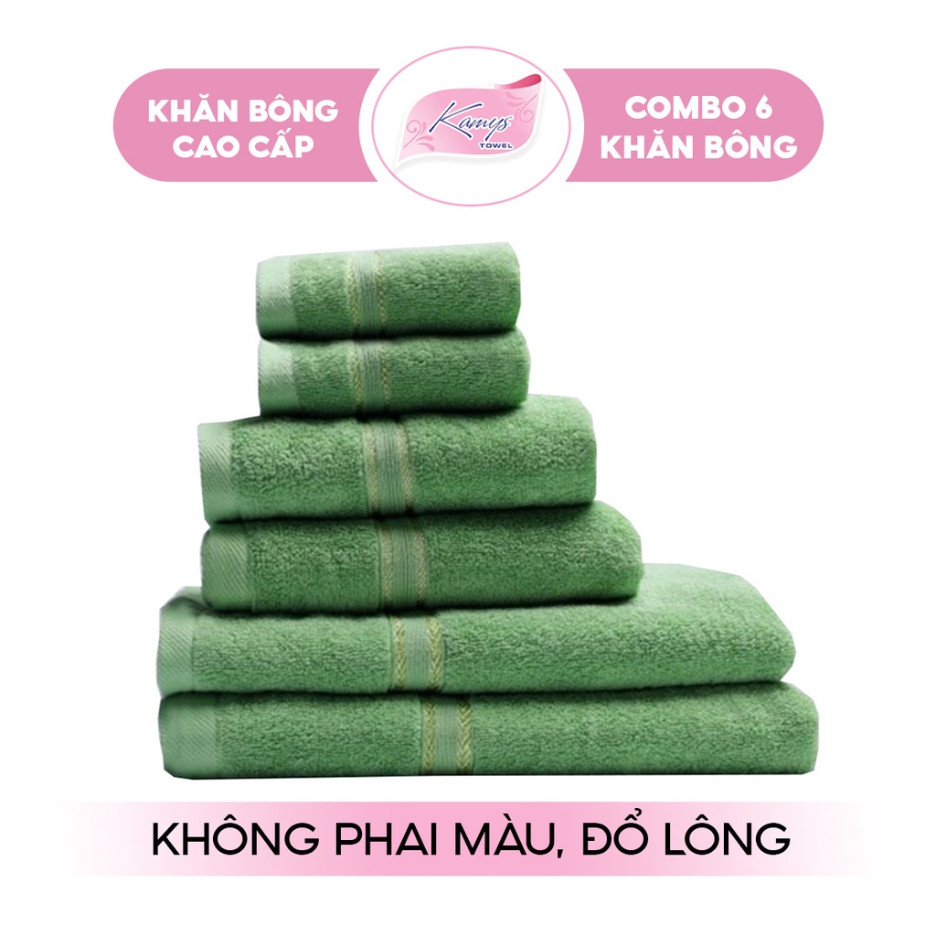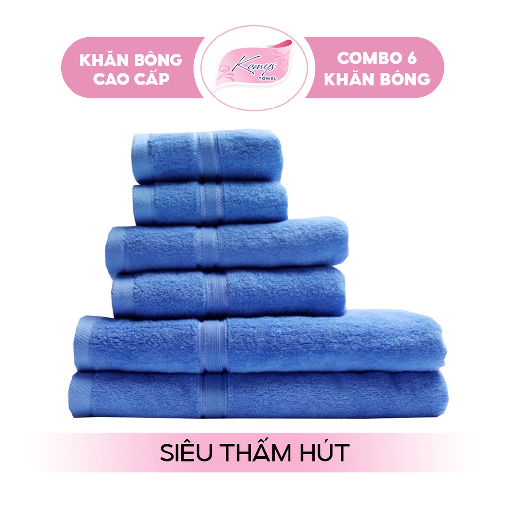 Giới thiệu Combo 6 Khăn tắm gội mặt cao cấp Kamys Towel 100% cotton siêu thấm hút, không sổ lông, không phai màu