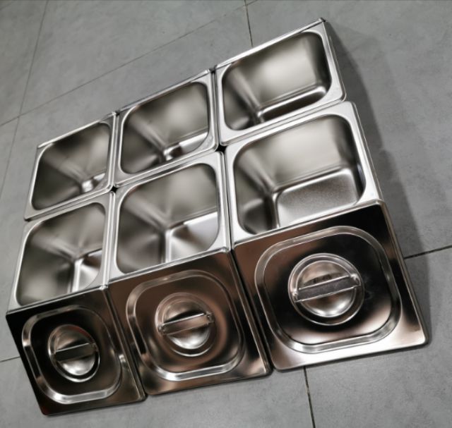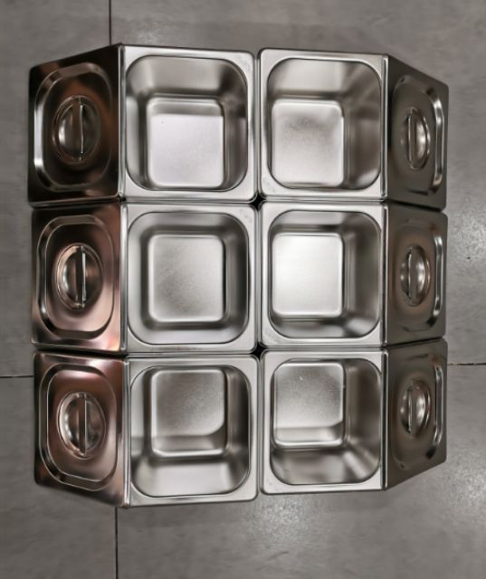 Giới thiệu Combo 6 khay inox đựng topping,thạch trà sữa 17x18 cao 10cm