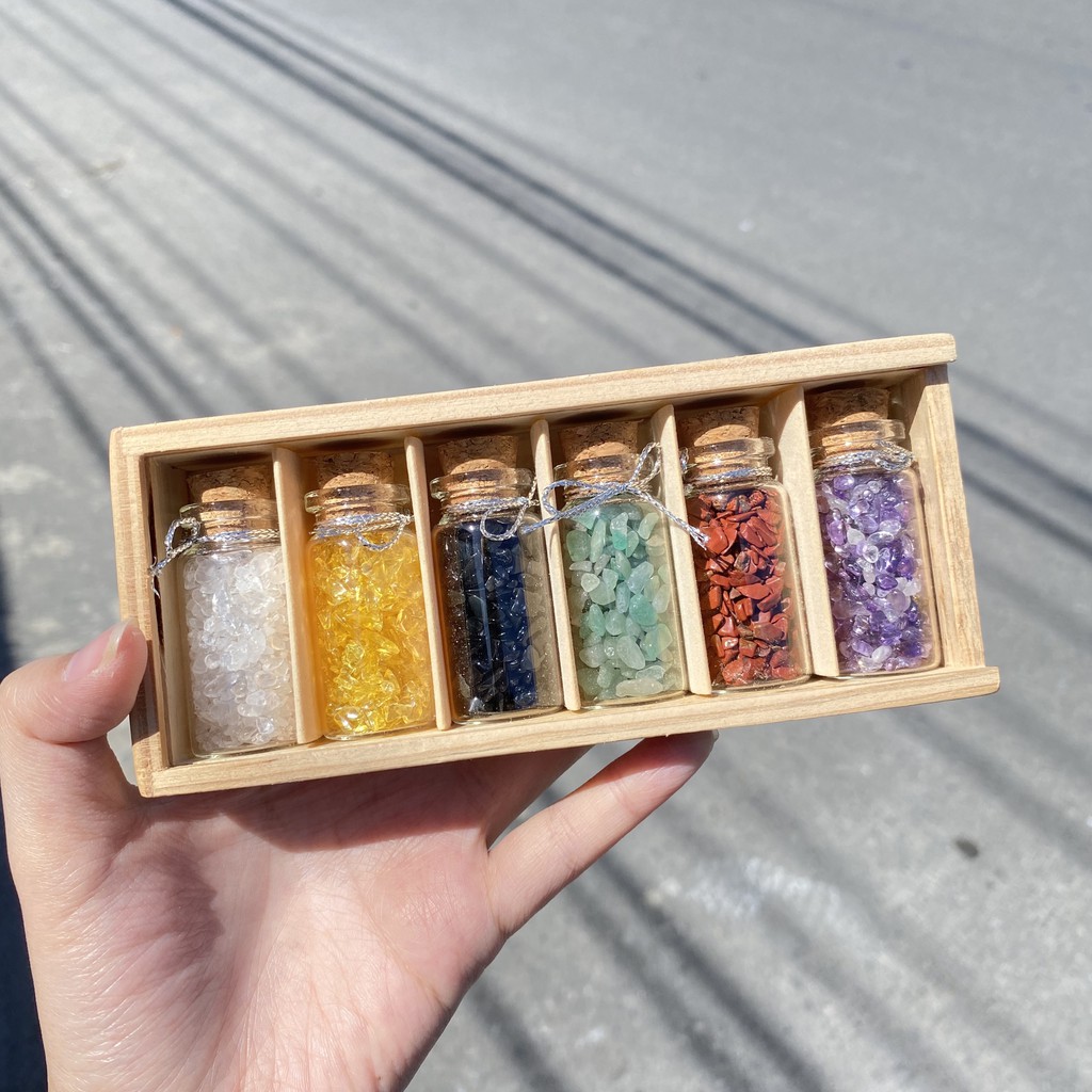 Combo 6 Lọ Đá Thanh Tẩy Phong Thủy Năng Lượng Để Bàn Hộp Đựng Gỗ Tự Nhiên Sang Trọng DA8