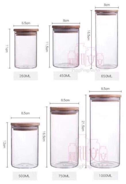 Combo 6 lọ nắp gỗ đủ size
