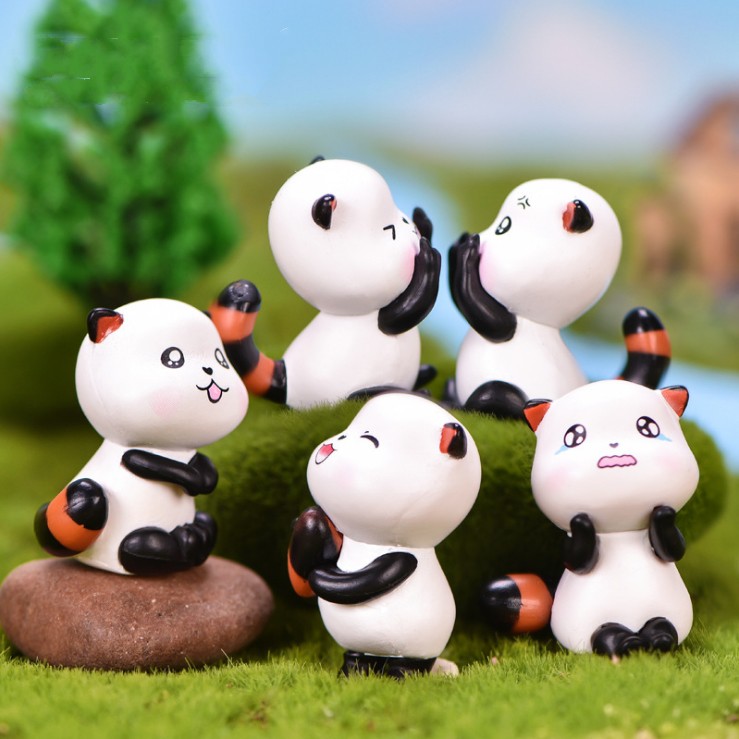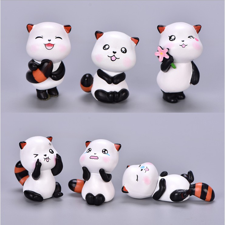 Combo 6 mô hình gấu mèo dùng trang trí tiểu cảnh, terrarium, móc khóa, DIY