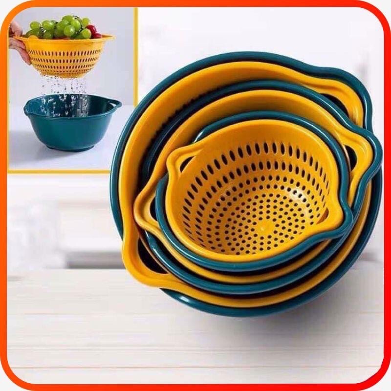 Combo 6 món rổ nhựa,⚡️FREESHIP⚡đựng đồ ráo nước, bộ rổ nhựa kèm chậu, set rổ nhựa 6 món