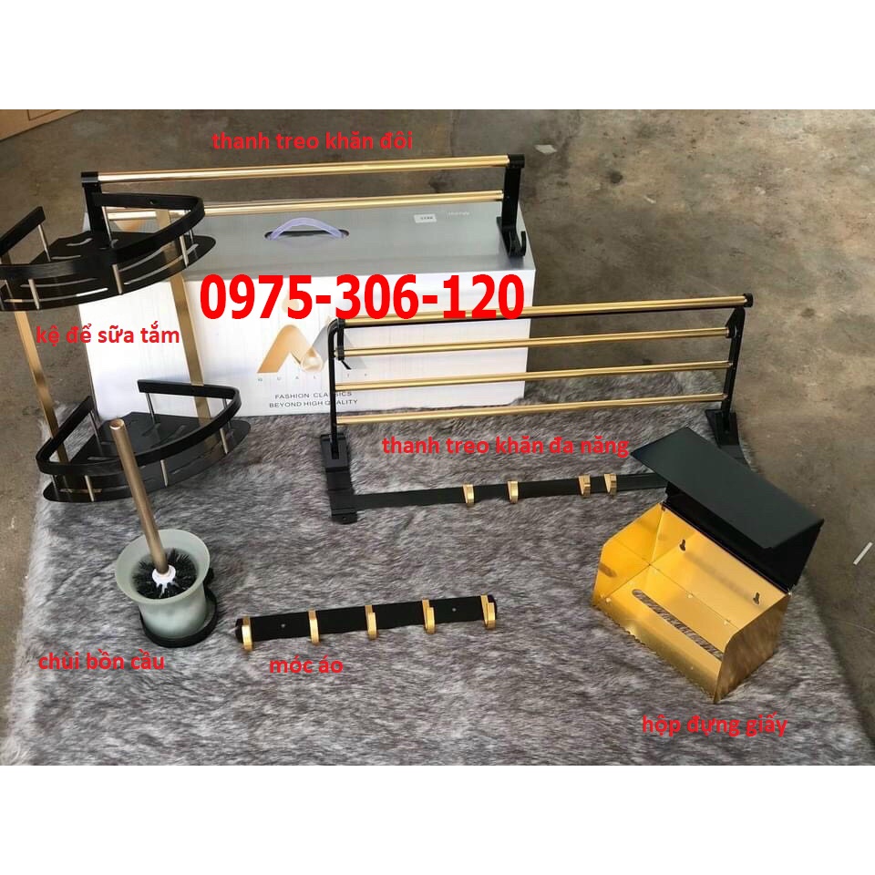 Combo 6 món phụ kiện nhà tắm hợp kim nhôm phủ nano mạ vàng, sáng đẹp, sang trọng, sạch sẽ, tiện nghi