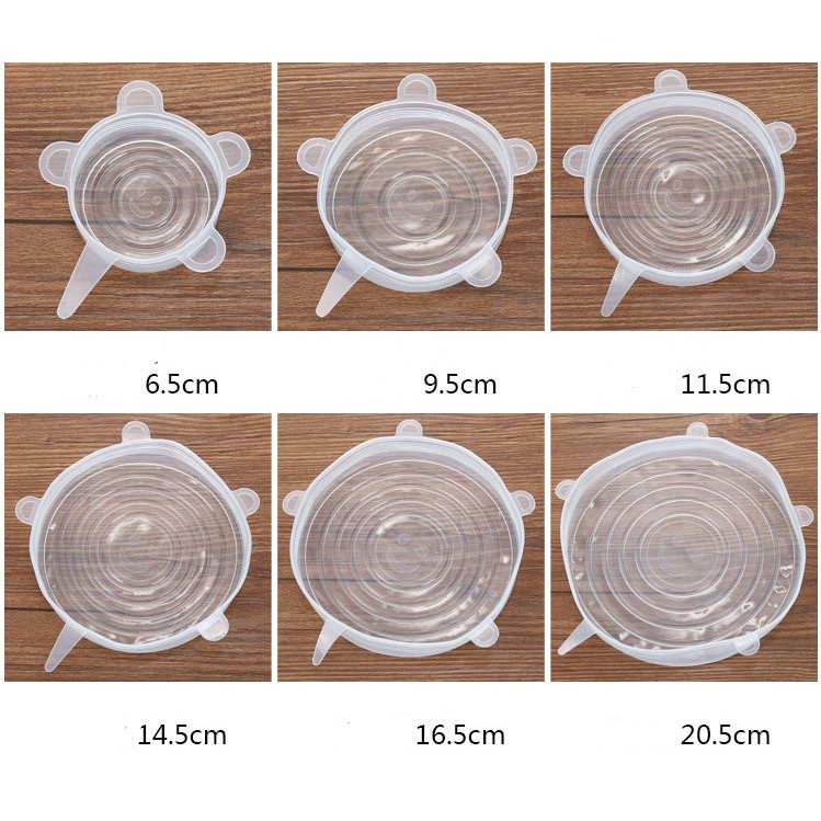 Combo 6 nắp silicone đậy thức ăn thực phẩm tránh bụi, ruồi muỗi kiến gián, tránh mùi hôi khi bỏ vào tủ lạnh