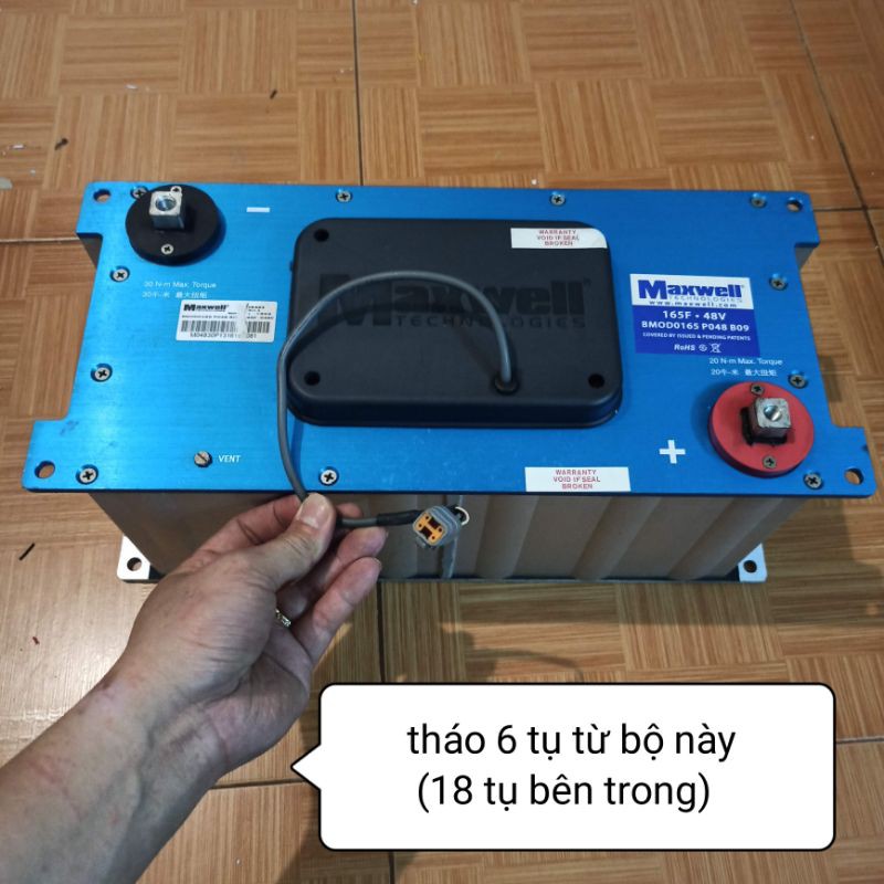 LH: zalo 0916560999Sản phẩm bao gồm 6 siêu tụ Maxwell 2.7V 3000F. Hàng tháo ra từ bộ siêu tụ 48V 165F