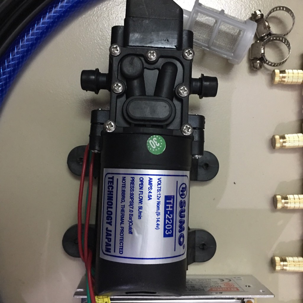 (COMBO 6 SP) Bộ phun sương 5 béc - bơm tăng áp mini - máy bơm nước mini 12v4A - CS 5L/phút