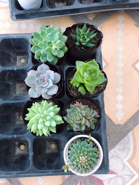 Mỗi combo 7 cây, 1 xương rồng và 6 sen đá size bầuCây như ảnh có độ tuổi từ 6 tháng – 12 tháng.