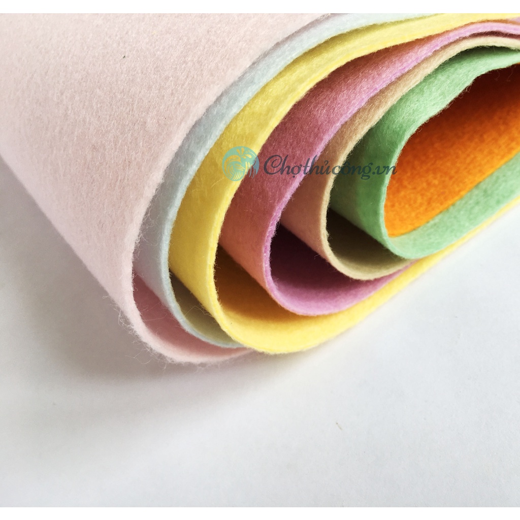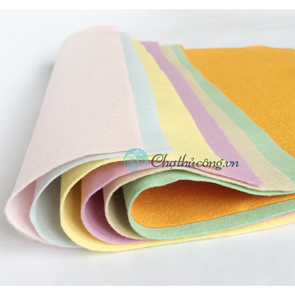 Combo 7 vải nỉ mềm Hàn Quốc cao cấp (Korean High-class Felt) D30XR37cm 7 màu Pastel (vải không dệt-vải dạ-soft felt) làm đồ handmade, craft, thủ côngVải nỉ mềm được nhập khẩu trực tiếp từ nhà máy sản xuất tại Hàn Quốc.