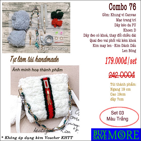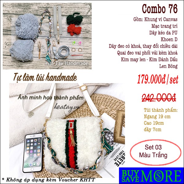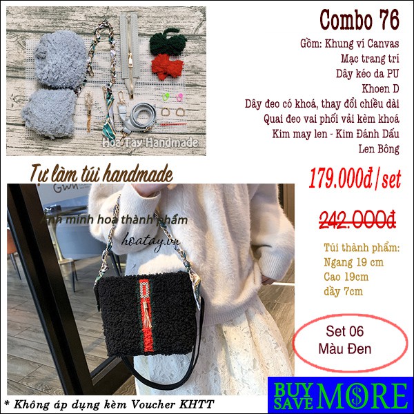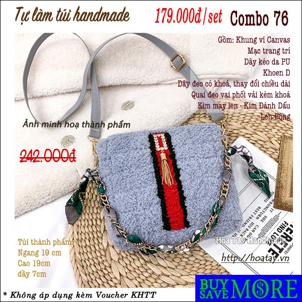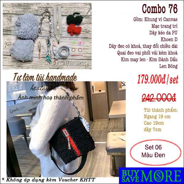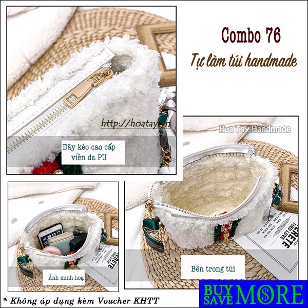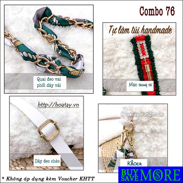 Sở thích & Sưu tầm > Dụng Cụ May Vá || Combo 76 - Tự làm túi handmade kiểu túi vuông, dây đeo phối vải sang trọng, Bộ nguyên liệu đầy đủ.Còn hàng