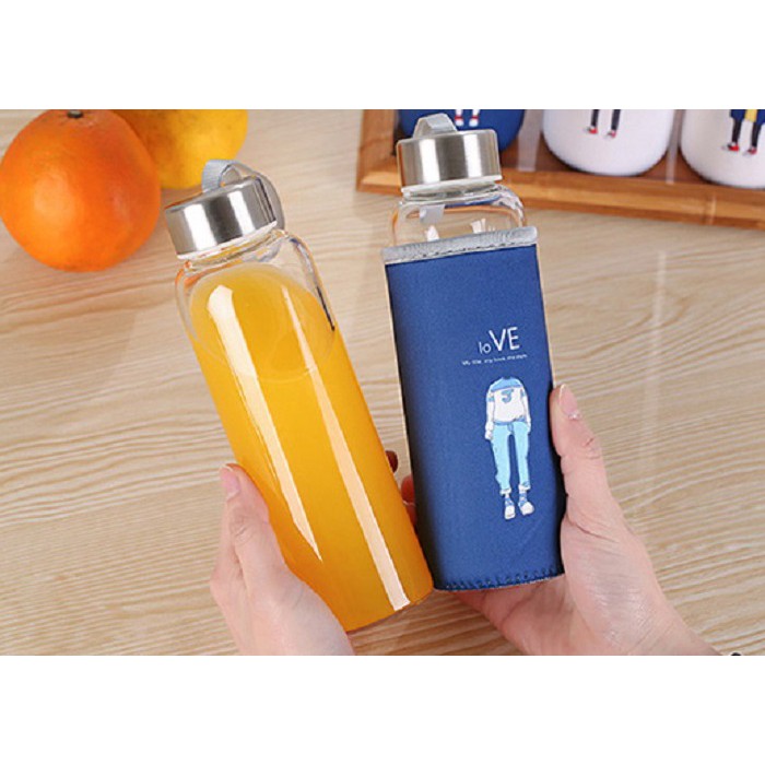 Bình nước thủy tinh 300ml nhỏ gọn, xinh xắn, tiện dụng cho bạn đựng đồ uống hằng ngày.