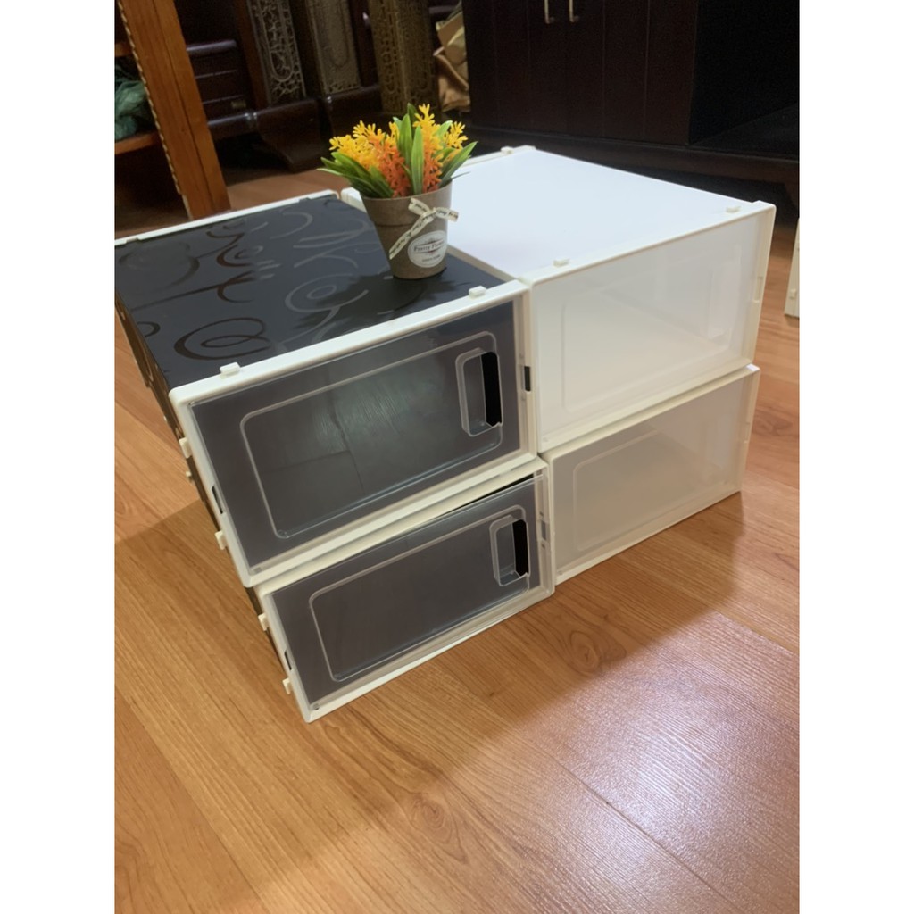- Tiện ích bạn có thể xếp hộp nằm ngang hay đứng để đựng những đôi boot cao 25cm vẫn vừa.