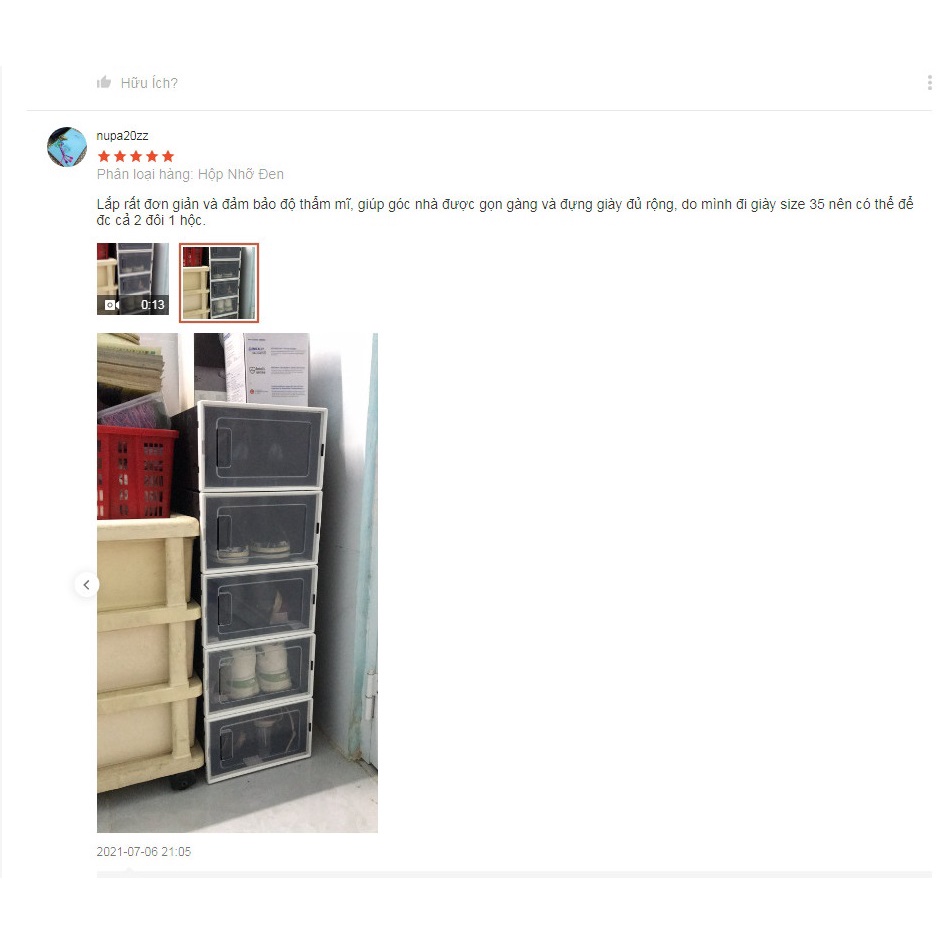 - Tiện ích bạn có thể xếp hộp nằm ngang hay đứng để đựng những đôi boot cao 25cm vẫn vừa.