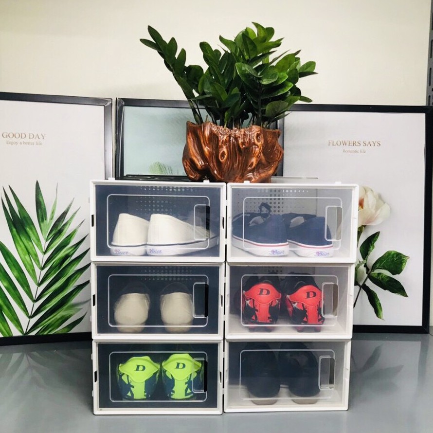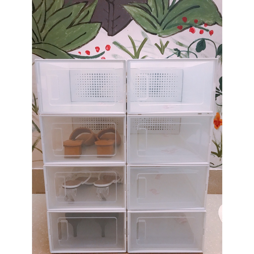 Combo 8 Hộp Đựng Giày Nhựa Cứng Lỗ Thông Hơi Thoáng Khí, Hộp Giày Tủ Giày Thông Minh Gấp Gọn