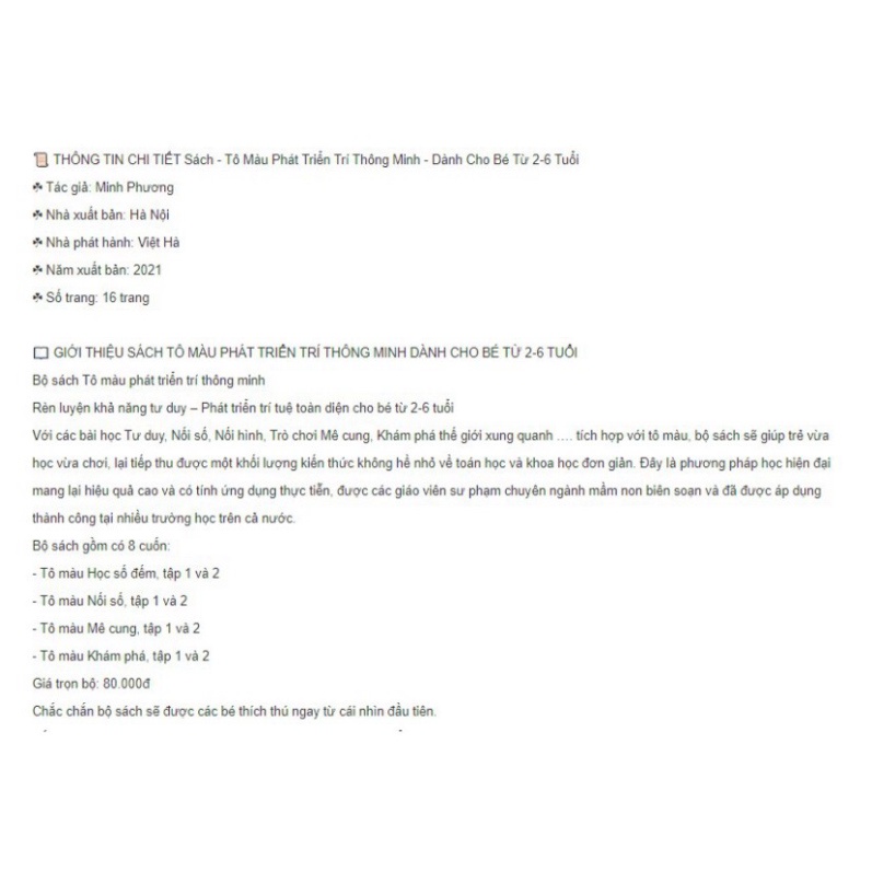 Văn Phòng Phẩm > Sổ & Giấy Các Loại > Giấy In || Combo 8 quyển tranh tô màu phát triển trí thông minhCòn hàng