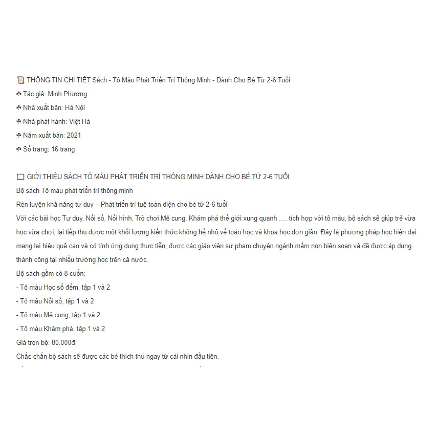 Văn Phòng Phẩm > Sổ & Giấy Các Loại > Giấy In || Combo 8 tranh tô màu phát triển trí thông minhCòn hàng
