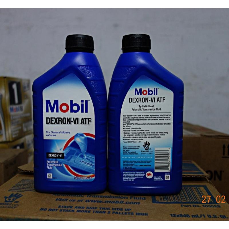 Giới thiệu sản phẩm Dầu hộp số tự động cao cấp Mobil Dexron VI ATF 1L USAMobil Dexron VI ATF được khuyến nghị sử dụng cho các dòng xe GM từ năm 2006 trở về đây như Lacetty CDX, Choverlet Cruze, Captiva, ..... Mobil1 Dexron 6 với thành phần tổng hợp được pha trộn tự động, giúp giảm ma sát mài mòn, nâng cao hiệu quả truyền dẫn của hộp số, nó phù hợp với tất cả khuyến nghị mà Dexron chỉ định