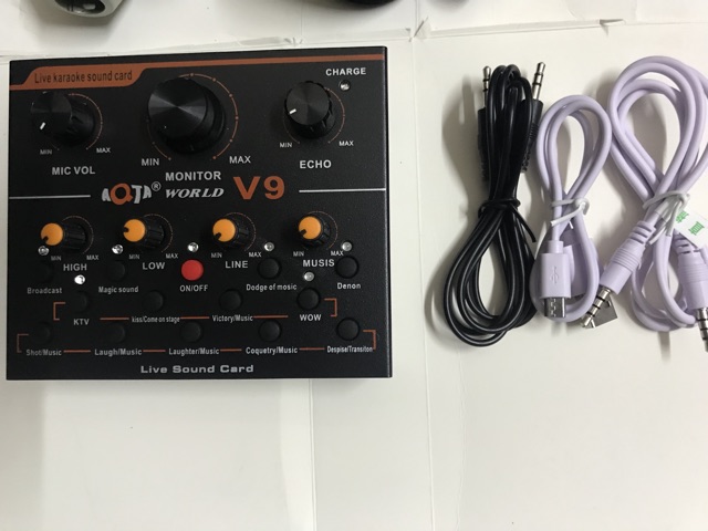 -Sound card V9 phiên bản quốc tế tiếng anh có pin sạc có auto tune kèm dây sạc dây live dây lấy nhạc.