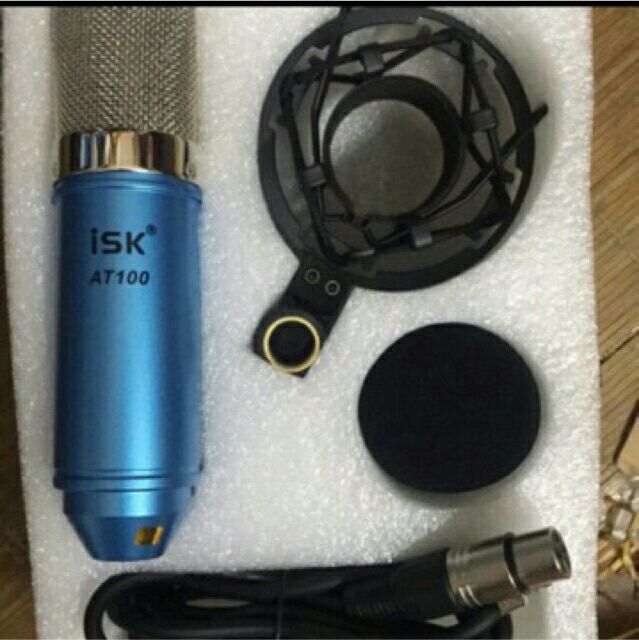 Bộ combo Mic thu âm ISK At100 soundcard v9 quốc tế full phụ kiện tặng tai nghe kiểm âm chụp tai sony- Mic Isk chính hãng AT100 có mã vạch in trên chuôi mic, kèm bệ đỡ bông lọc âm dây 3.5mm tiêu chuẩn