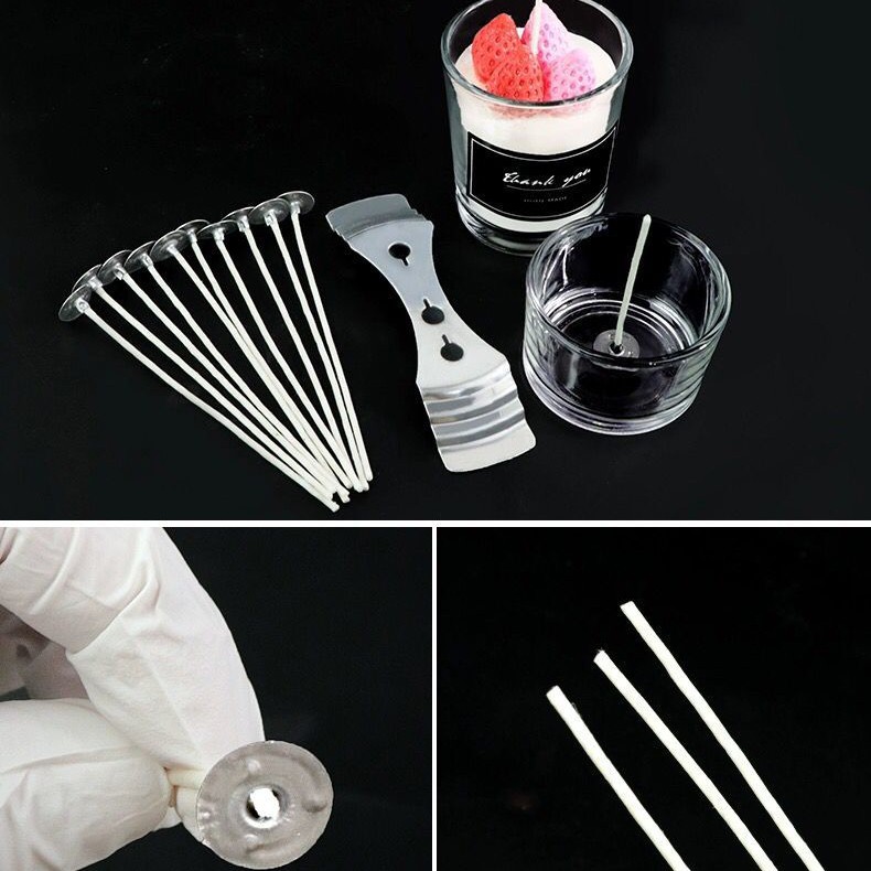 Nhà cửa & Đời sống > Trang trí nhà cửa > Nến & đồ đựng nến || Combo bấc nến cotton và đế kẹp dùng làm nến thơm cao cấp, tặng mẫu thử tinh dầu KobiCòn hàng
