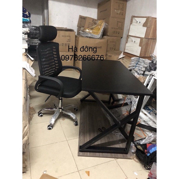 Combo gồm 1 bàn chân chữ k khung sắt sơn tĩnh điện mặt gỗ mfc phủ melalim dày 18lyVà 1 ghế xoay lưới có tựa đầu