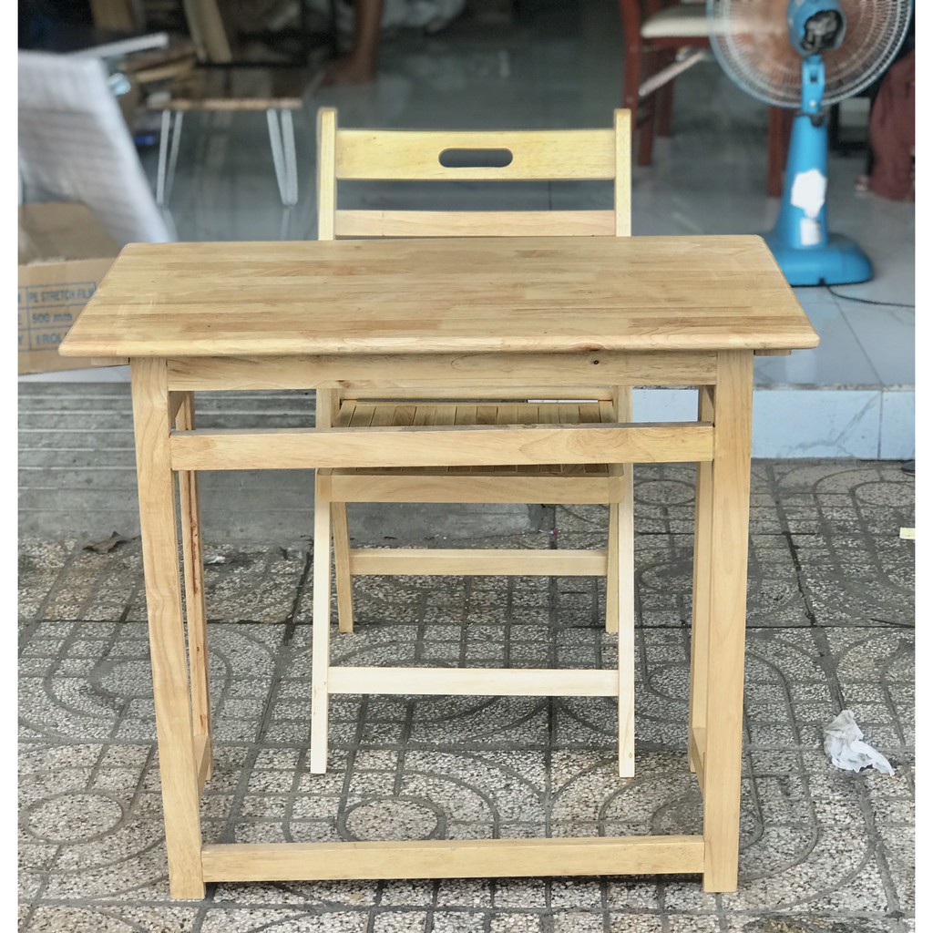 Combo Bàn Học Sinh.Chất liệu: Bàn và Ghế đều được làm từ gỗ cao su, được chà mịn, sơn bóng.