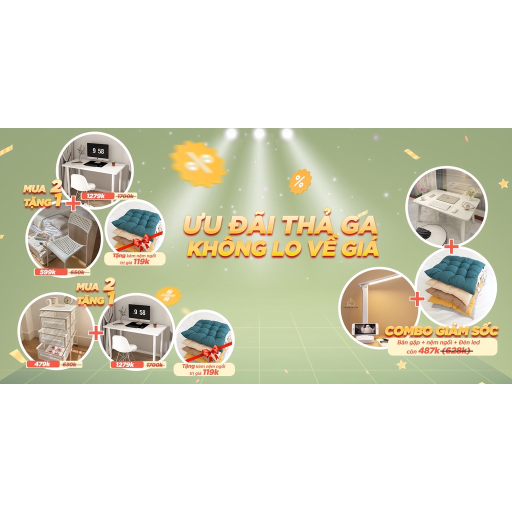 + Size size 80*60*75cm (Size phù hợp cho phòng diện tích nhỏ / siêu nhỏ, các em học sinh ngồi học bài, làm việc)